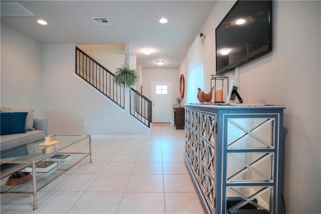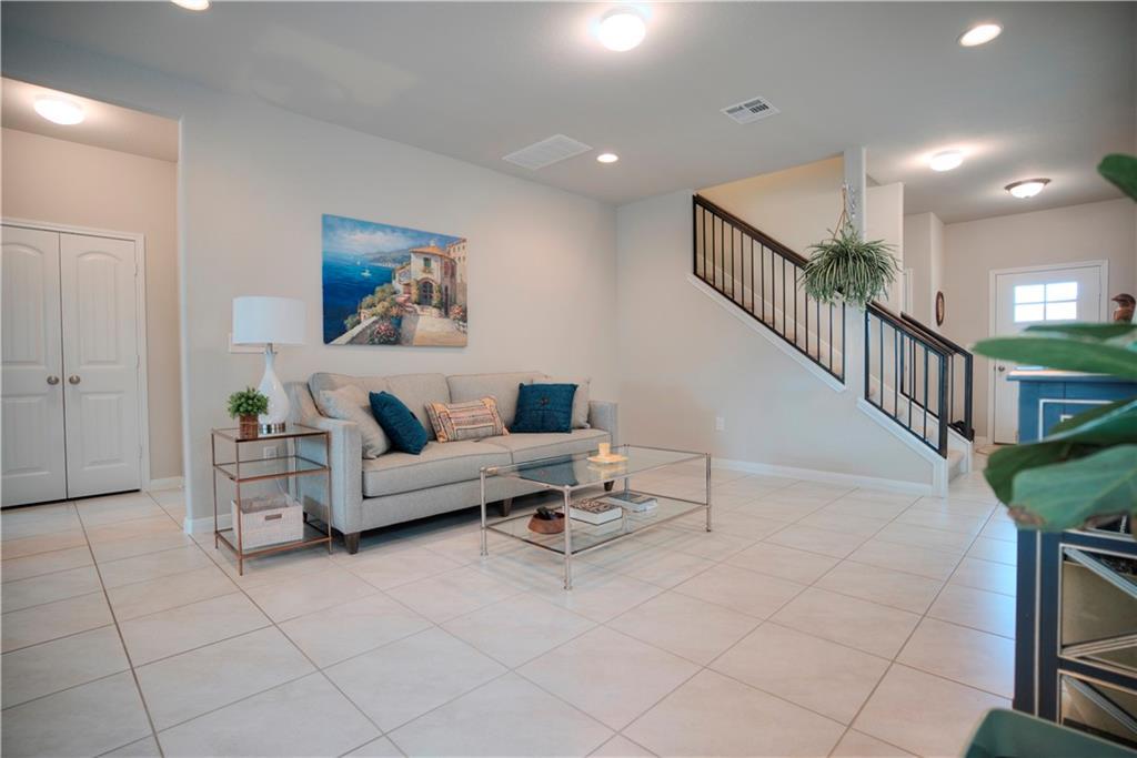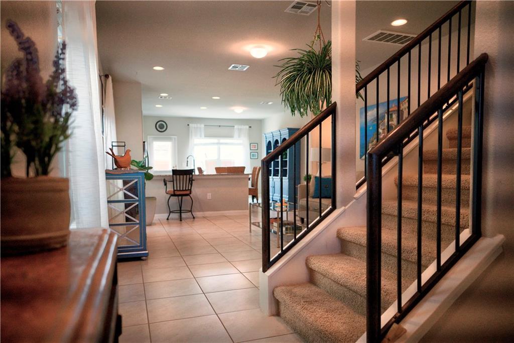 Lovely townhouse in the Teravista Villas with ALL the Teravista amenities. Open concept floor plan with closed off loft that can easily be turned into a fourth bedroom or whatever you need. Beautiful landscaped front and backyard with sprinkler system. No neighbors behind home - well established Georgetown nursery. Carpet only in bedrooms and upstairs 24-inch tile throughout other rooms. Fabulous location! Easy access to I-35, 130 Tollway, HEB, outlet mall, IKEA, and the beautiful town square of Georgetown, listed as one of "The Most Beautiful Texas Town Squares" near Austin! Teravista amenities include three pools with kiddie splash pad, golf club, two fitness centers, hiking trails, and more.